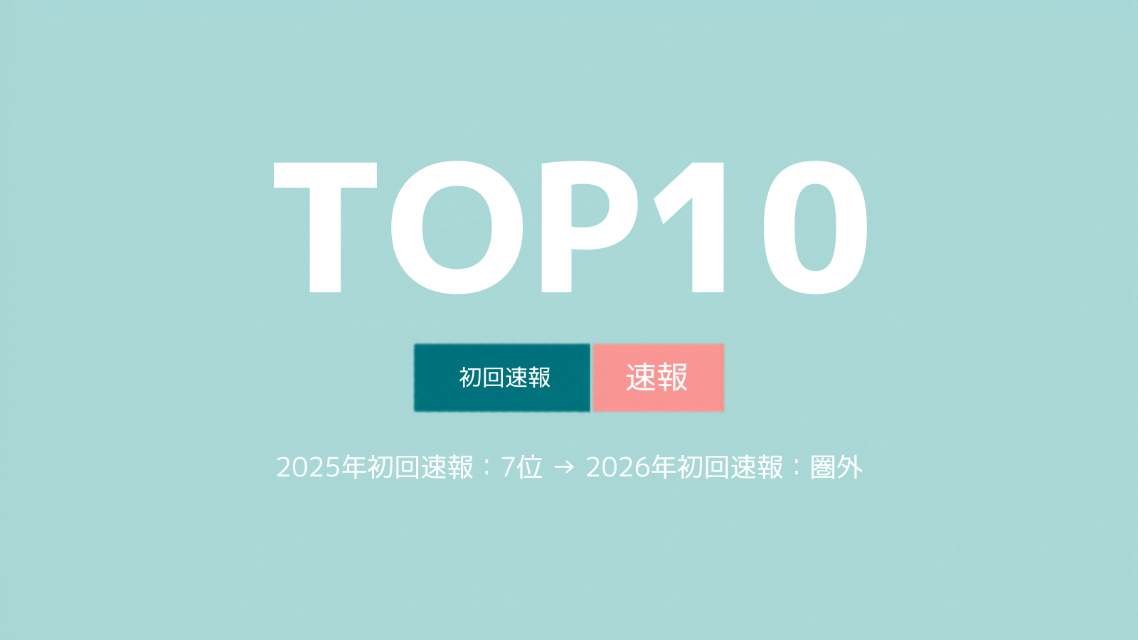 2025年はハンギョドンが7位にランクインしていましたが、2026年の初回速報ではTOP10圏外という結果になりました。